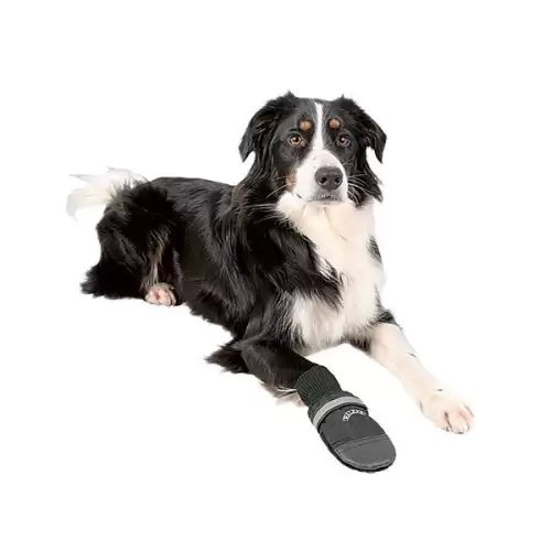 Boty pro psy vyrobené ze softshelu. Zapínání je na suchý zip. Reflexní pruhy zajišťují bezpečnost při venčení za tmy. Podporují hojení ran a snižují riziko infekcí. Došlapová část je pokrytá koženkou. Velikost je vhodná pro Zlatého retvívra.