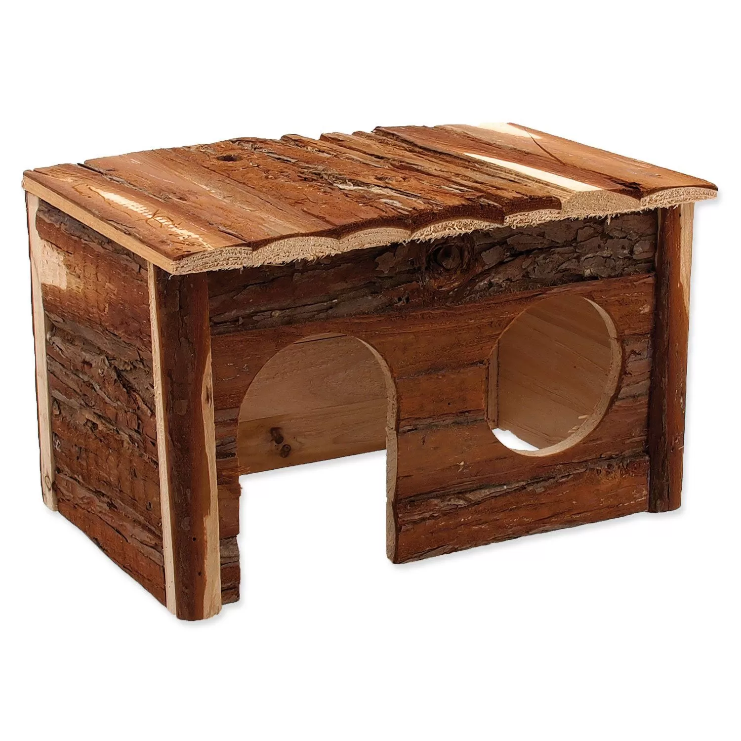 Dřevěný domek pro hlodavce. Velikost: 28 x 18 x 16 cm.