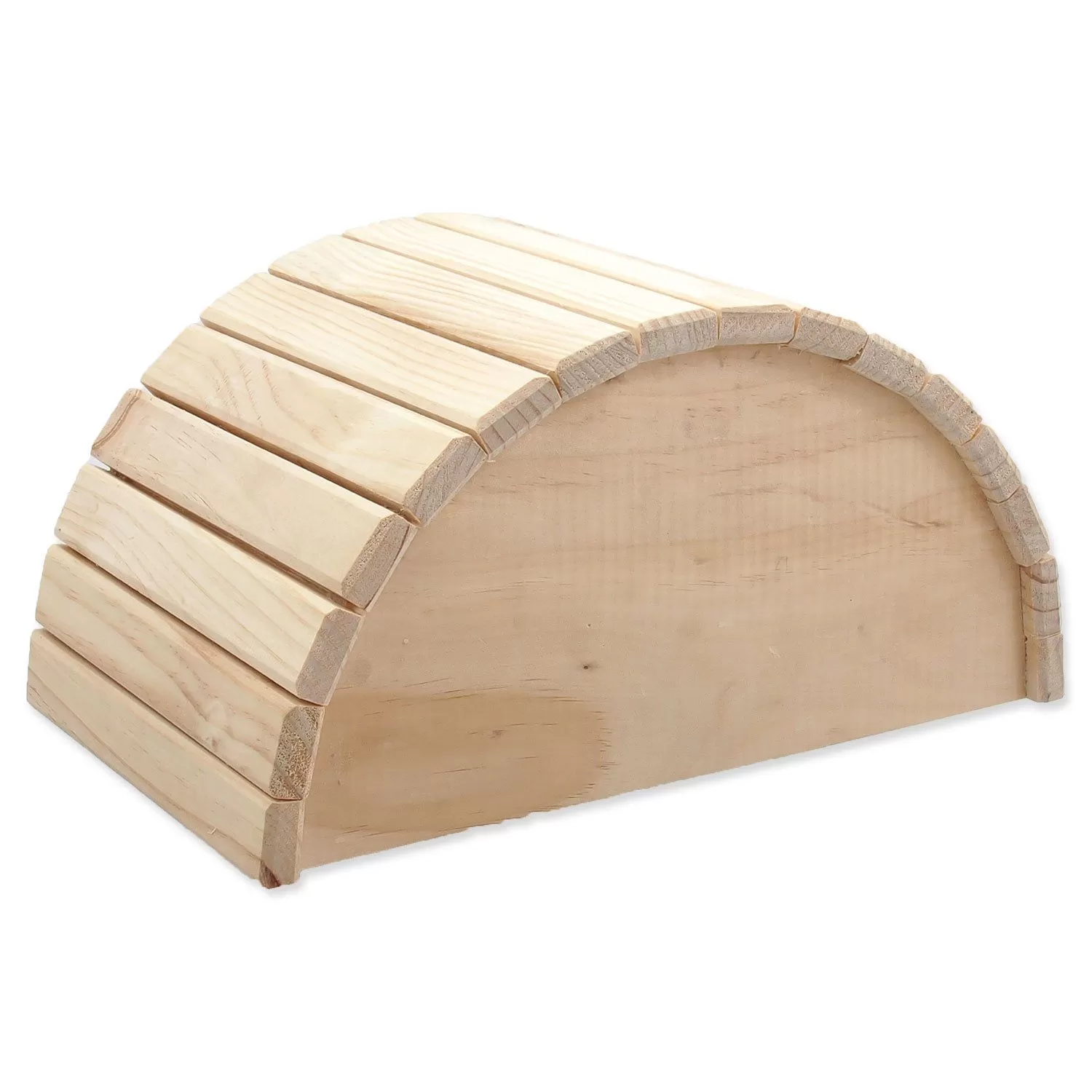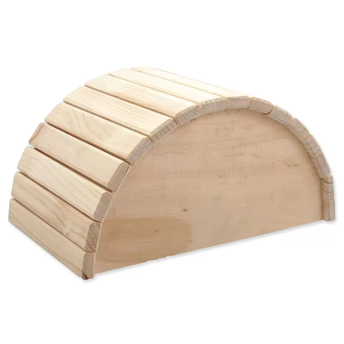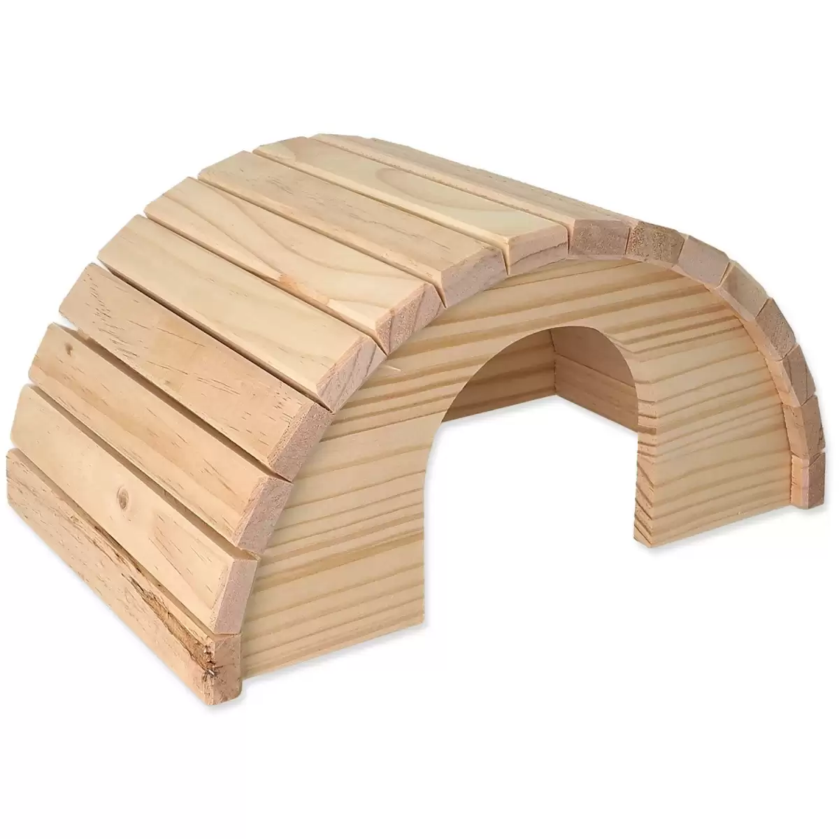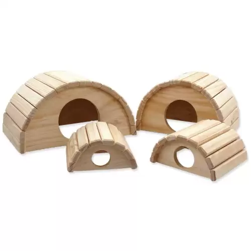 Dřevěný půlkruhový domek pro hlodavce. Velikost: 31 x 20 x 15,5 cm.