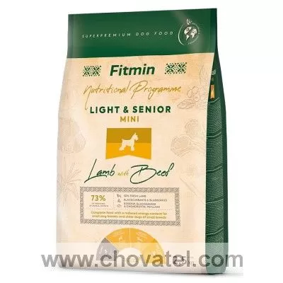 Superpémiové krmivo Mini Light & Senior z řady Nutritional Programme Lamb With Beef obsahuje vysoké procento jehněčího a hovězího masa v kombinaci s rýží a hrachem. Krmivo je speciálně uzpůsobené pro dospělé psy se sníženým obsahem energie malých plemen (s hmotností do 15 kg) ve věku od 1 do 9 let a pro starší psy malých plemen ve věku od 9 let.