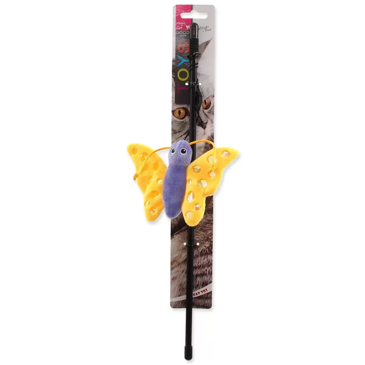 Hračka na prutu s catnipem pro kočky. Velikost: 41 cm.