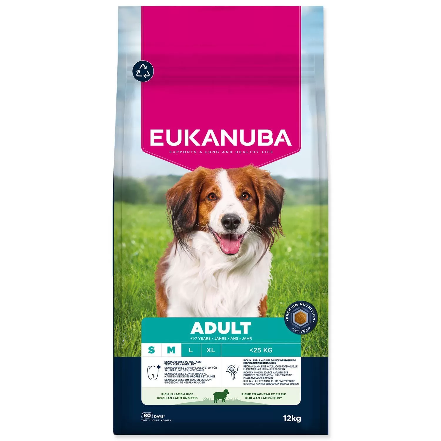Jehněčí maso a rýže jsou lehce stravitelné, vhodné i pro citlivý žaludek. Šestihranné granule se systémem DentaDefense proti tvorbě zubního kamene.