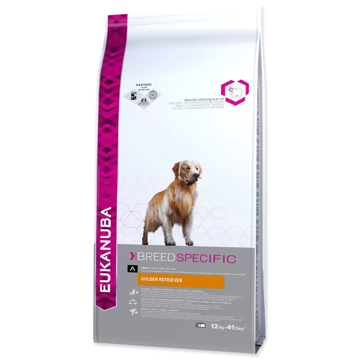 Zlatí retrívři jsou přátelští a inteligentní psi, dobře vychovaní s velkým šarmem. Potřebují nezbytné živiny pro nádhernou srst a trávení může využívat výhod prebiotické vlákniny. Pravidelný pohyb pomáhá udržovat optimální stav těla. Krmivo Eukanuba Golden Retriever je kompletní a vyvážená denní strava určená k udržování lesklé srsti, k podpoře zdravých kloubů a stabilního trávení.