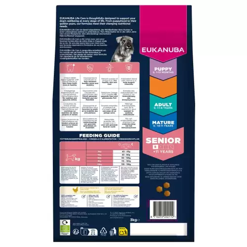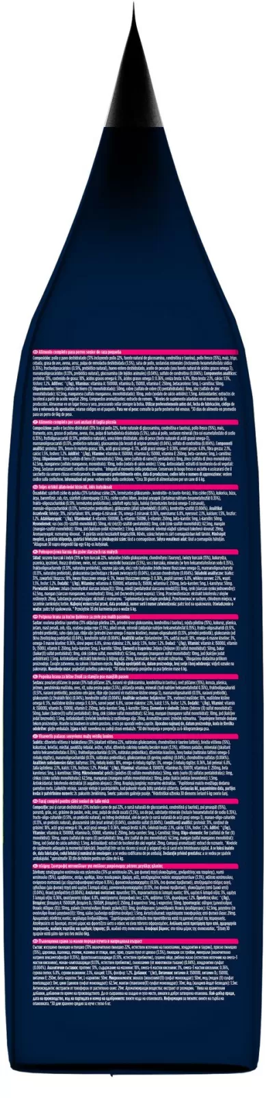 Složení: | Sušené kuřecí a krůtí (31 % včetně kuřecí 22 %, přirozený zdroj glukosaminu, chondroitinu a taurinu), čerstvé kuřecí (15 %), kukuřice, pšenice, ječmen, drůbeží tuk, oves, rýže, sušená řepná dužina (3,5 %), kuřecí šťáva, minerální látky (včetně hexametafosforečnanu sodného 0,35 %), fruktooligosacharidy (0,51 %, přírodní prebiotikum), sušená celá vejce, rybí tuk (přirozený zdroj (čeho) omega-3 mastné kyseliny), mannanoligosacharidy (0,13 %, přírodní prebiotikum), glukosamin (z živočišné tkáně) (0,04 %), chondroitin sulfát (0,004 %). |