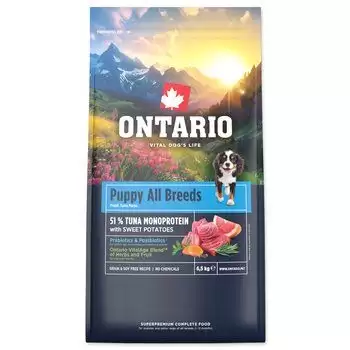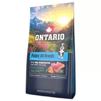 Krmivo Ontario Puppy & Junior All Breeds Monoprotein Tuna & Sweet Potatoes 6,5kg
