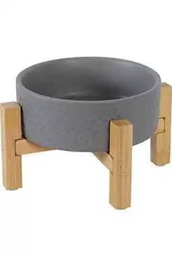 Keramická miska pro psy i kočky v elegantním designu. Miska je na bambusové podnoži, která je opatřena protiskluzovými podložkami.