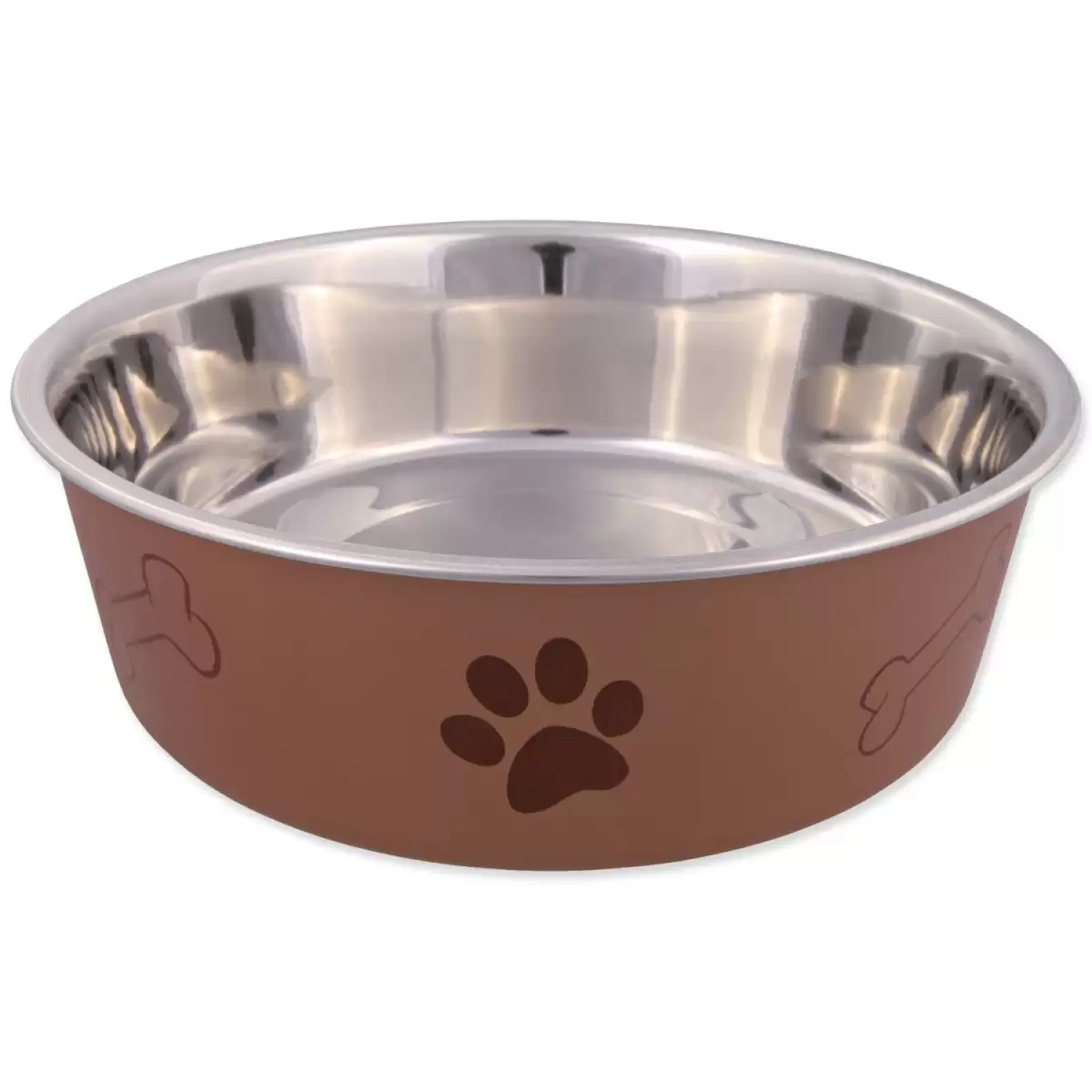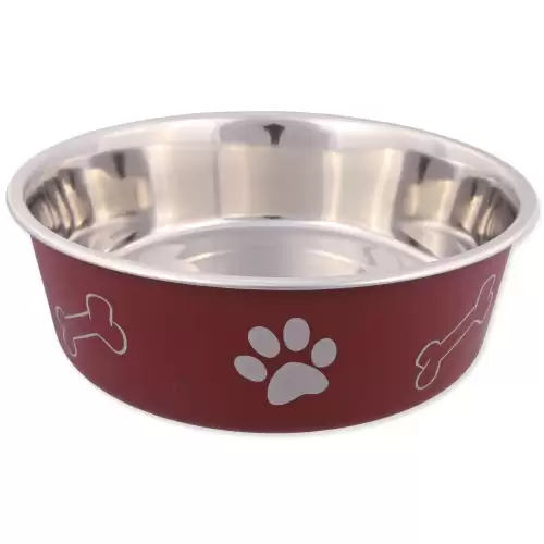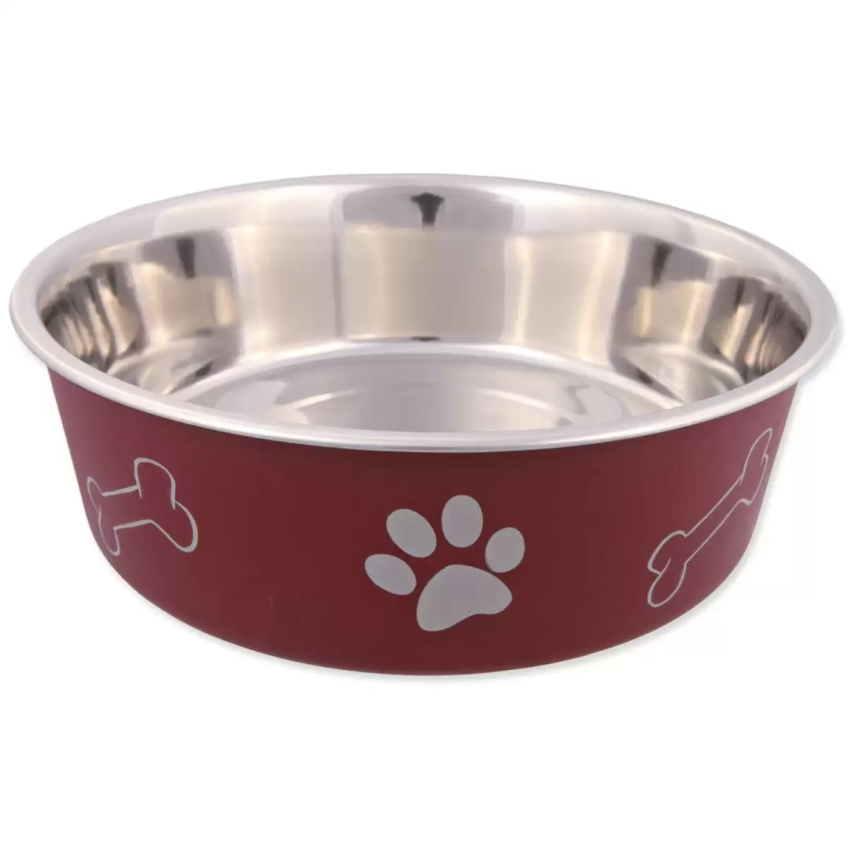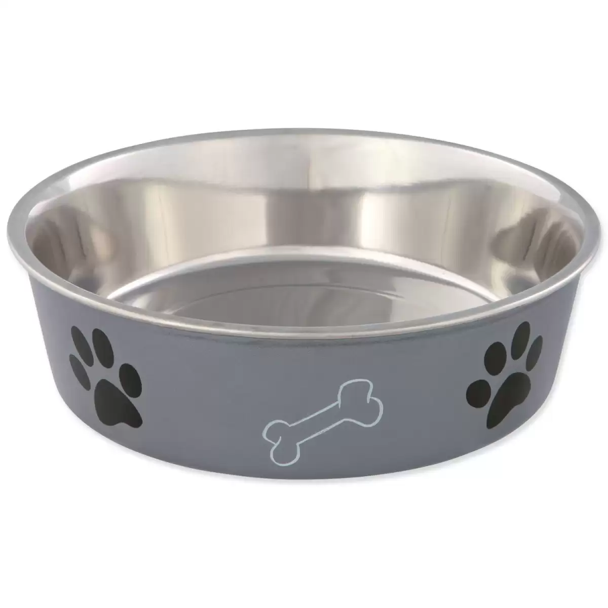 Miska nerezová pro psy s plastovým povrchem. S protiskluzovým kroužkem, který zabrání posouvání misky po podlaze.