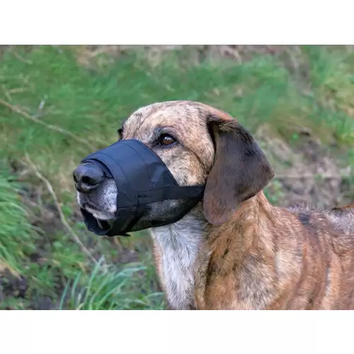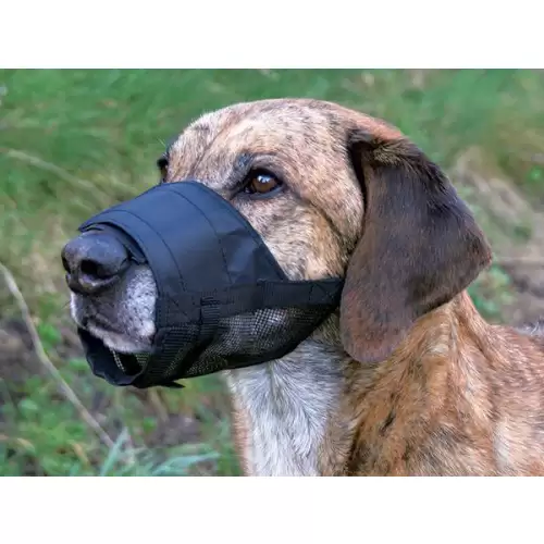 Náhubek pro psy vyrobený z polyesteru. Spodní část je síťovaná pro lepší cirkulaci vzduchu. Náhubek je ideální pro krátkodobé použití např. na cestu k veterináři. Vhodný například pro plemeno Německá doga