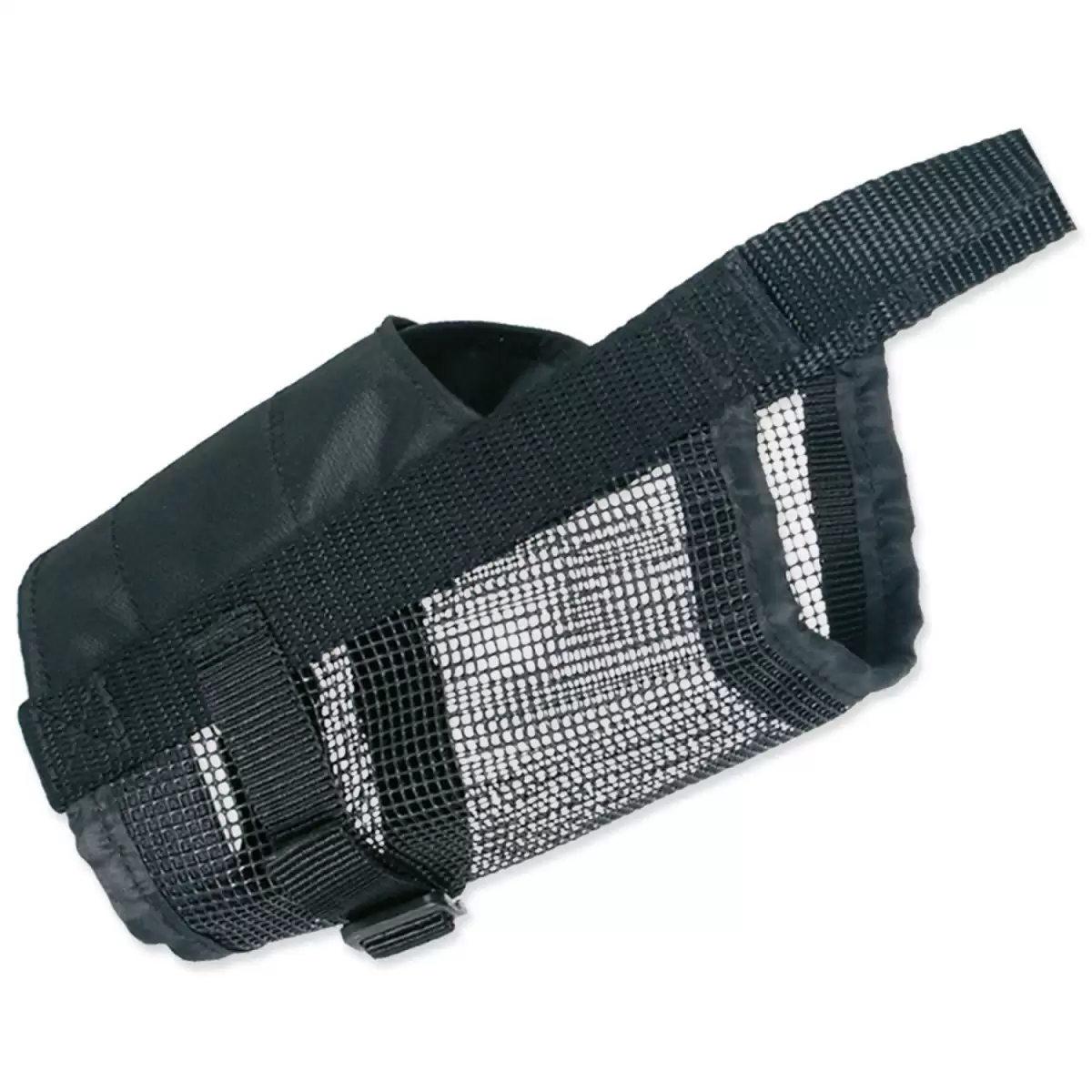 Nastavitelný fixátor tlamy. Fixátoru je možné nastavit velikost obvodu v oblasti tlamy psa i délku popruhu za ušima zvířete. Lze jej tak přizpůsobit většině psů. Velikost: obvod tlamy 18-28 cm, délka popruhu za ušima 26-42 cm.