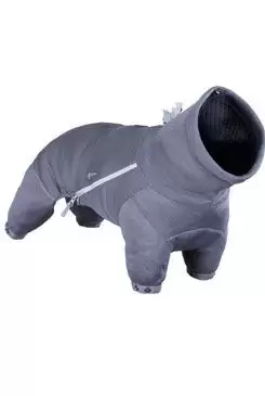 Konstrukce kombinézy na polozip umožňuje rychlé a snadné oblékání a svlékání. Na zadních a předních švech jsou integrované odrazky a navíc elegantní odnímatelná reflexní figurka pro větší bezpečnost v rušných městských oblastech, když je venku tma. Midlayer Overal slouží jako střední vrstva, ale je ideální také pro aktivní psy před a po výstavách, psích sportech a jiných namáhavých aktivitách.