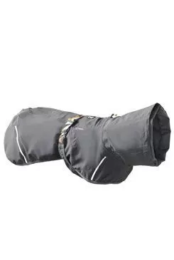 Tato tenká pláštěnka nemá látkovou podšívku, ale její povrch je laminovaný hladkou voděodolnou vrstvou. Voděodolnost proti dešti je promyšlena do nejmenšího detailu. Otvor pro připevnění vodítka se dá zavřít a límec utáhnout za ušima, aby pejskovi nenatekla voda dovnitř. Pláštěnka má lepené švy pro vyšší voděodolnost.