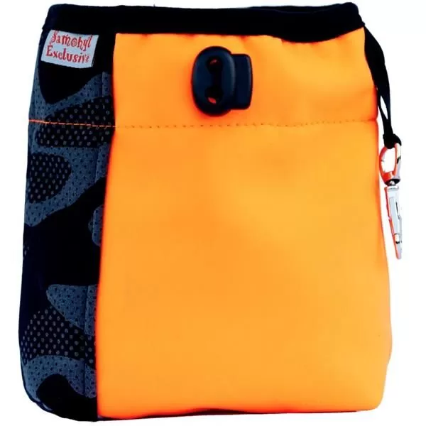 Pamlskovník Samohýl Exclusive Splendor je praktická a trvanlivá kapsička na psí dobroty nebo i menší hračku. Sáček je uzavíratelný pomocí stahovací šňůrky a můžete ho nosit buď navléknutý (na opasku) za textilní poutko nebo připnutý (např. k poutku kalhot) kovovou karabinkou.