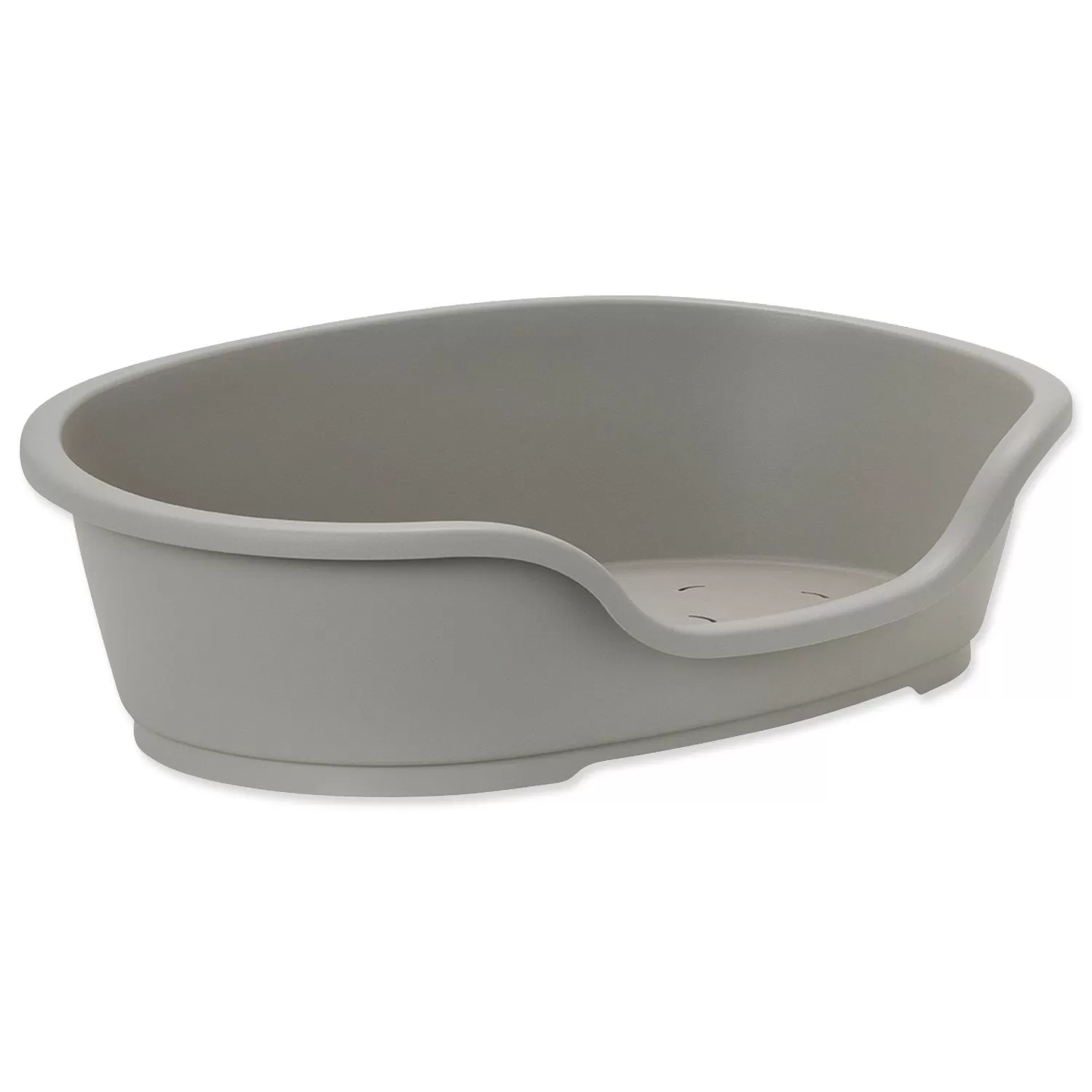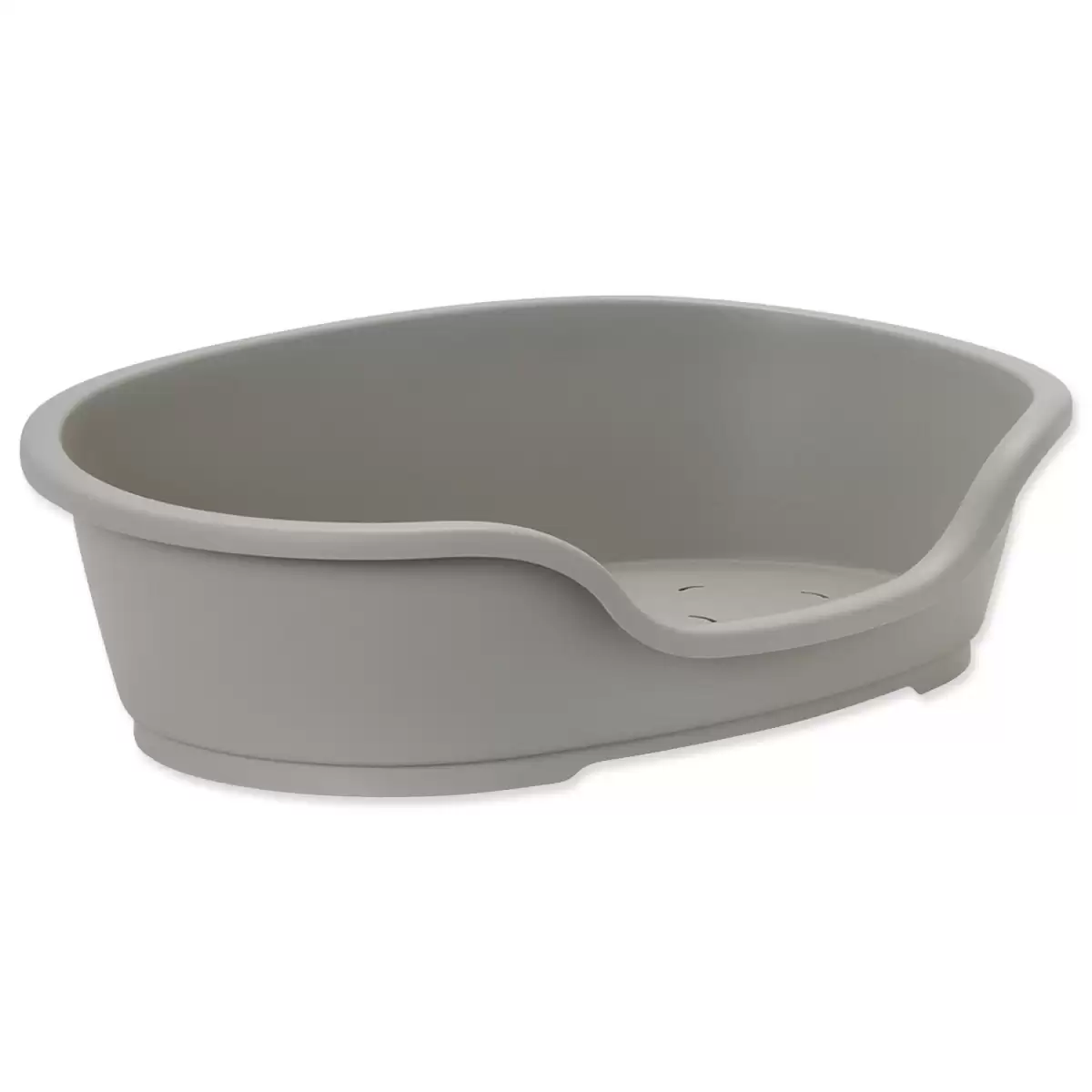 Oválný plastový pelíšek s větracími otvory ve spodní části.