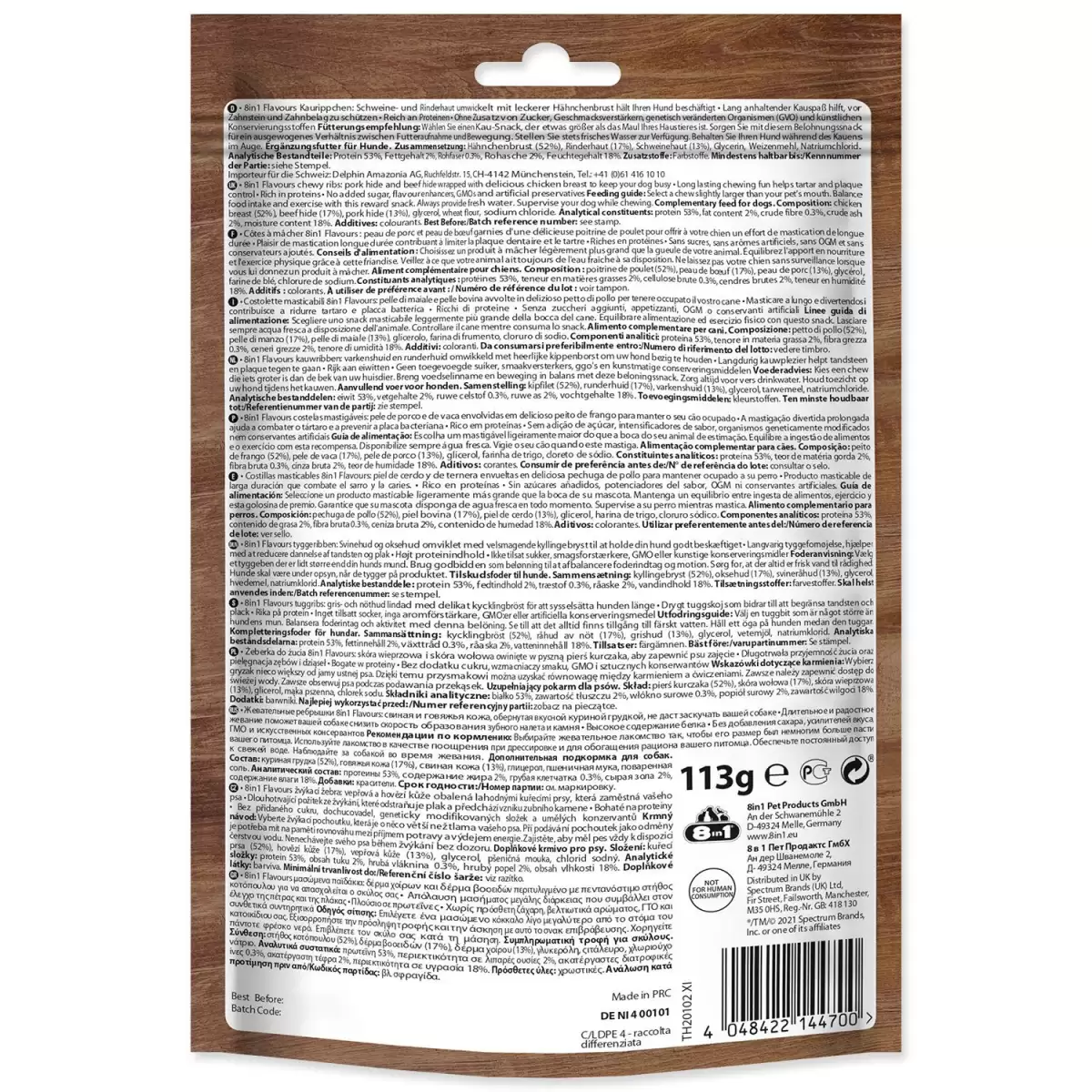 Krmný návod: množství pamlsků upravte s ohledem na fyzickou aktivitu a pravidelný příjem potravy. Vždy zajistěte dostatek čerstvé vody.