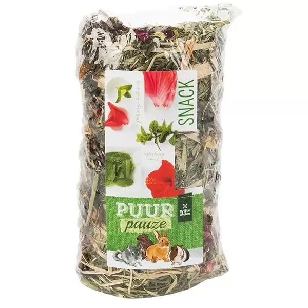100% přírodní zábavný pamlsek pro býložravé drobné savce. Králíci, morčata, činčily a osmáci si nejen pochutnají na voňavém seně, okvětních lístcích ibišku a lístcích máty, ale zároveň rozplétáním rolky zaženou nudu. Pamlsek stimuluje přirozený hlodací instinkt a podporuje tak zdraví zubů. Navíc obsažená hrubá vláknina přispívá k správnému fungování trávení.