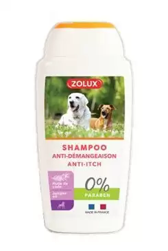 Šampon zmírňijící svědění vhodný pro všechna plemena psů. Tento šampon s přírodním výtažkem jalovcového oleje čistí a vyživuje srst. Tymiánová esence čistí pokožku a zmírňuje její svědění. Bez parabenů