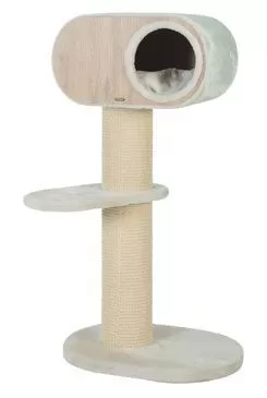Nádherný kočičí strom/škrabadlo s čistými liniemi v art deco stylu dokonale splyne s interiérem vašeho domova. Díky kvalitním materiálům jsou všechny části robustní a pohodlné: melamínová jeskyně, sloupek pokrytý sisalovou rohoží, kožešinovou plošinou a polštář. Struktura tohoto kočičího stromu je vyrobena ze 100% FSC® - certifikovaného dřeva a sloupek je pokryt dlouhotrvající sisalovou rohoží. Jeskynní polštář je praktický a lze ho pro snadnou údržbu vyjmout. Jeskyně má jen 1 otvor, díky kterému se kočky cítí BEZPEČNĚ. Škrabadlo má vysokou stabilitu a je pro kočky velmi pohodlné. Průměr sloupku: 17 cm, celková výška 114 cm.