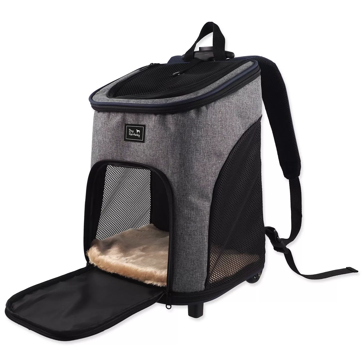 která spojuje styl, pohodlí a bezpečí. Ideální na cesty s mazlíčkem – snadno přeměníte na batoh díky odnímatelným kolečkám.