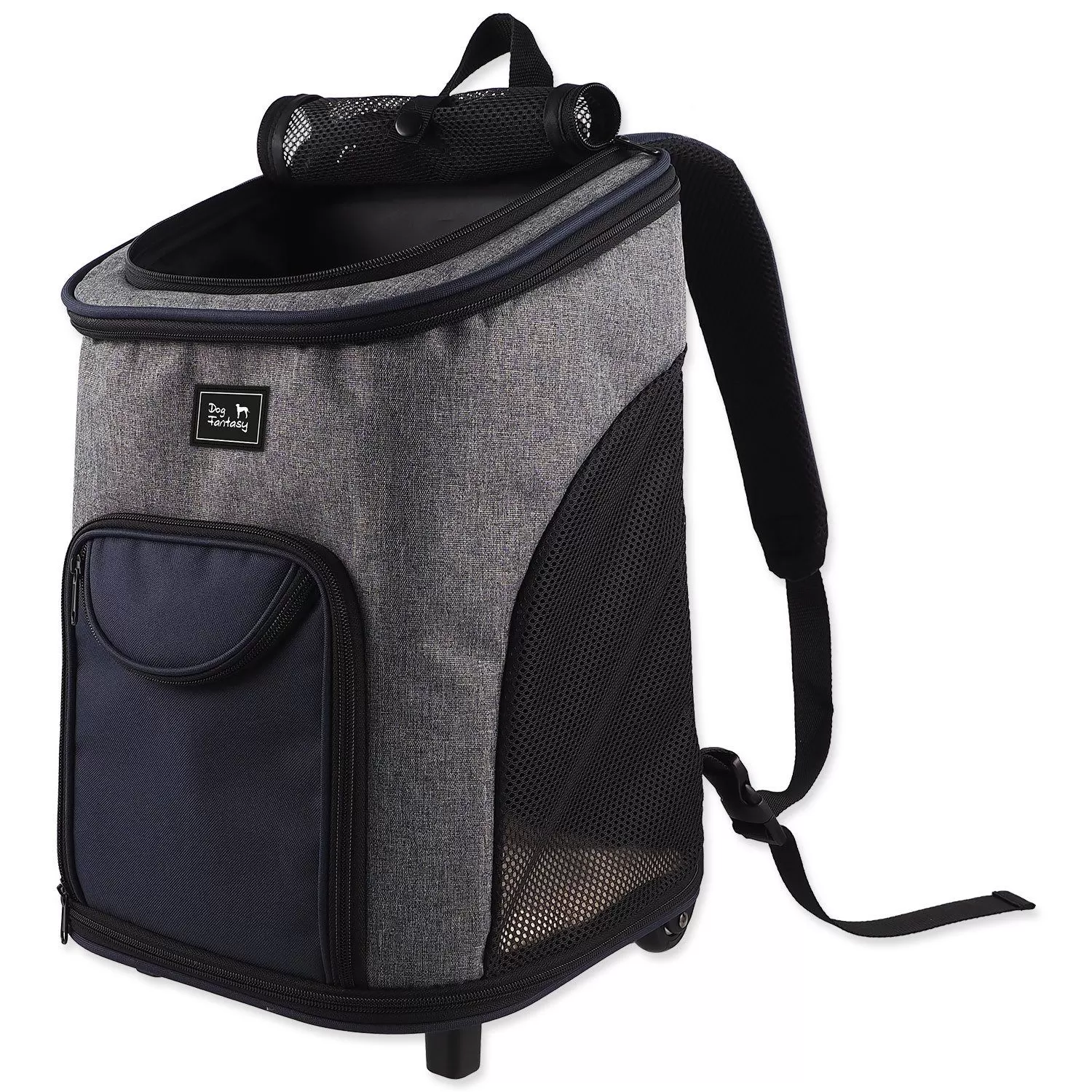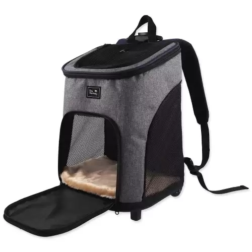 Složení: Vnější látka - 100% polyester, vozík - 30% hliník, 70% plast. Ideální na cesty s mazlíčkem – snadno přeměníte na batoh díky odnímatelným kolečkám.