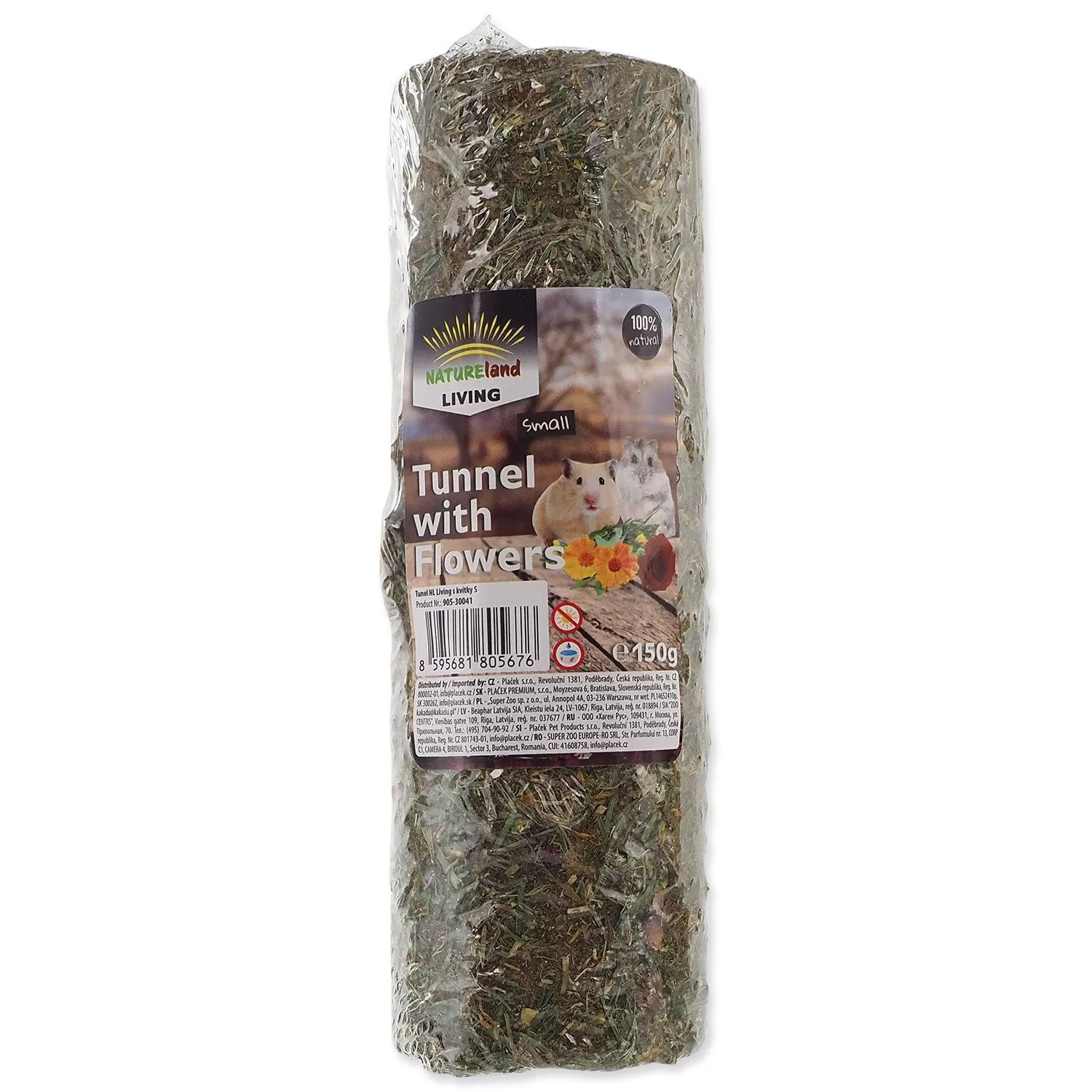 Tunel ze sena s květy pro králíky a hlodavce. Velikost: 19 x 6 cm.