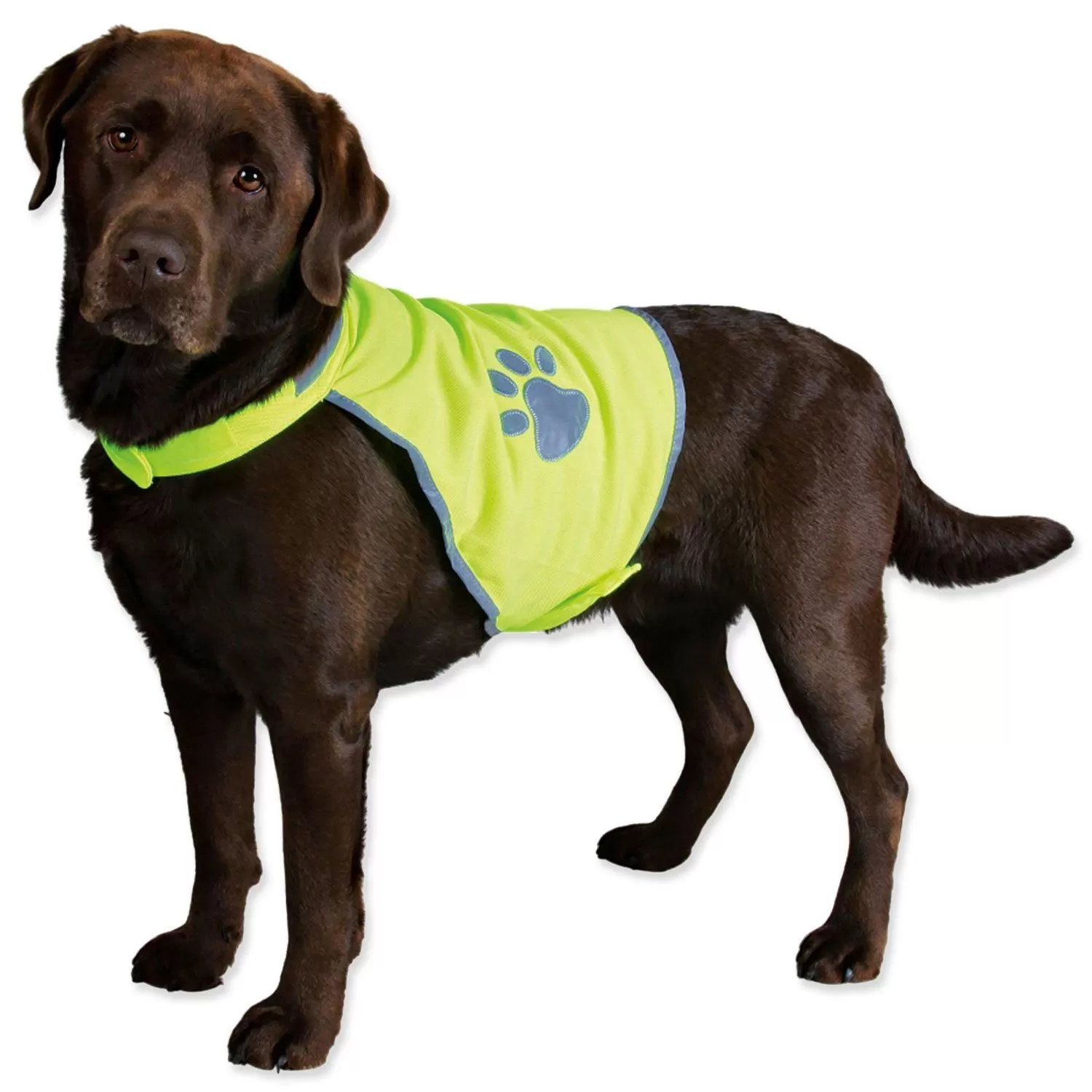 Bezpečností vesta pro psy vyrobená z polyesteru. Tato vesta zajistí bezpečné venčení vašeho psa především za tmy a ze šera. Obšitá reflexním páskem s potiskem tlapky. Plynule nastavitelné na břiše a krku se zapínáním na suchý zip. Neomezuje psa v pohybu.
