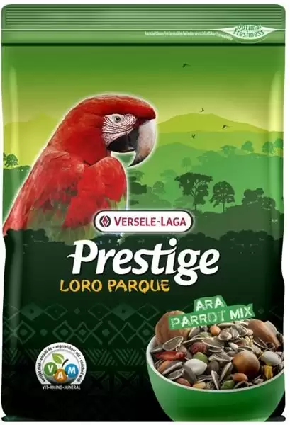 Směs zrnin Prestige Loro Parque je složena z pečlivě vybraných semen a je obohacena vitaminy, aminokyselinami a minerály ve formě chutných extrudovaných pelet V.A.M. Tyto pelety obsahují navíc složku Florastimil®, která zajišťuje optimální funkci střev a lepší kondici. Pro správnou funkci ptačího žaludku (gizzard) a správný poměr vápníků a fosforu v těle jsou do směsi přidány ještě čištěné ústřičné lastury.