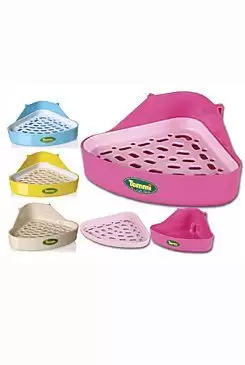 WC pro králíky a fretky rohové s pl.roštem 18x18x10cm